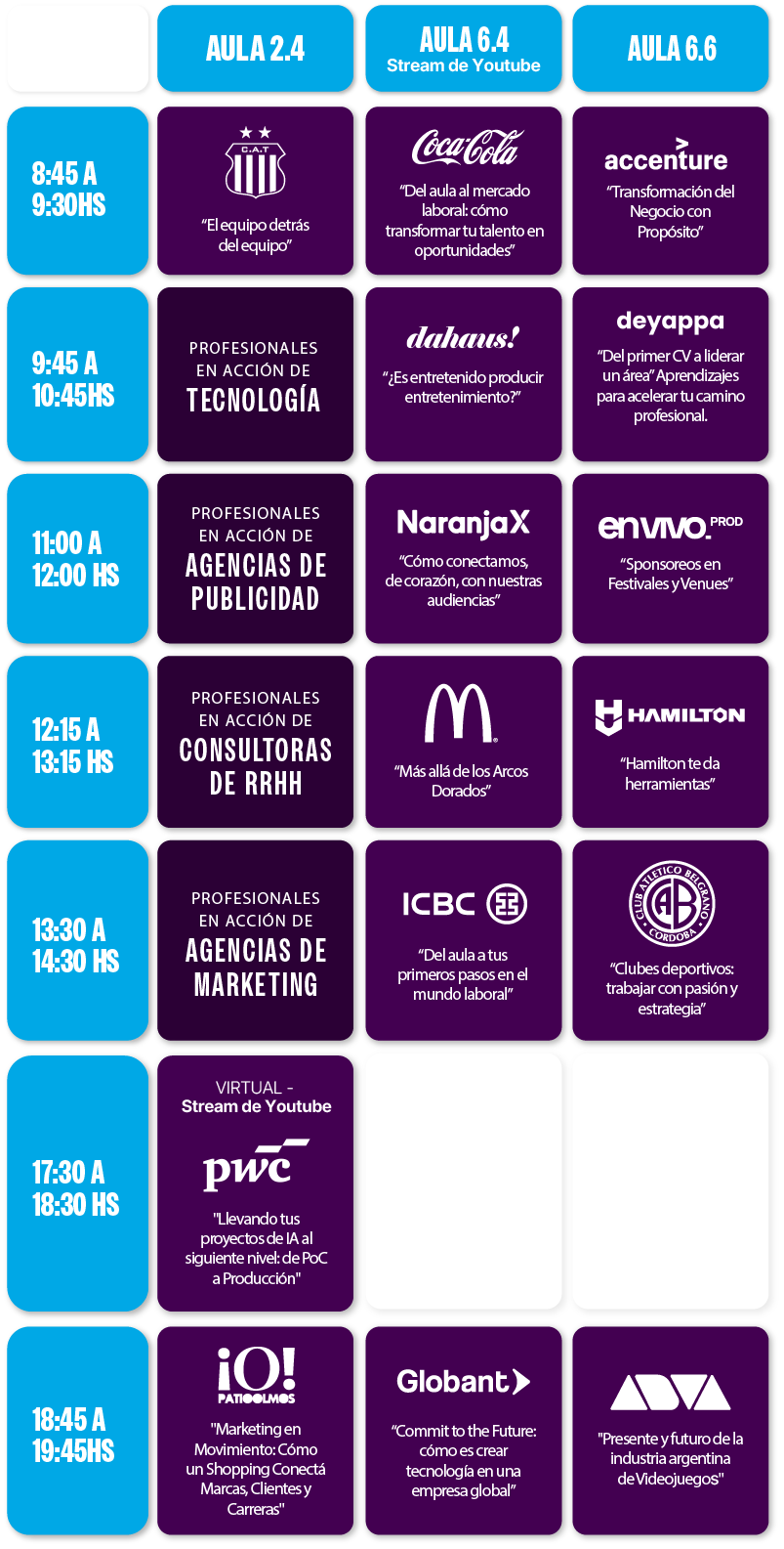 cada compañía ofrecerá charlas donde podrás conocer: